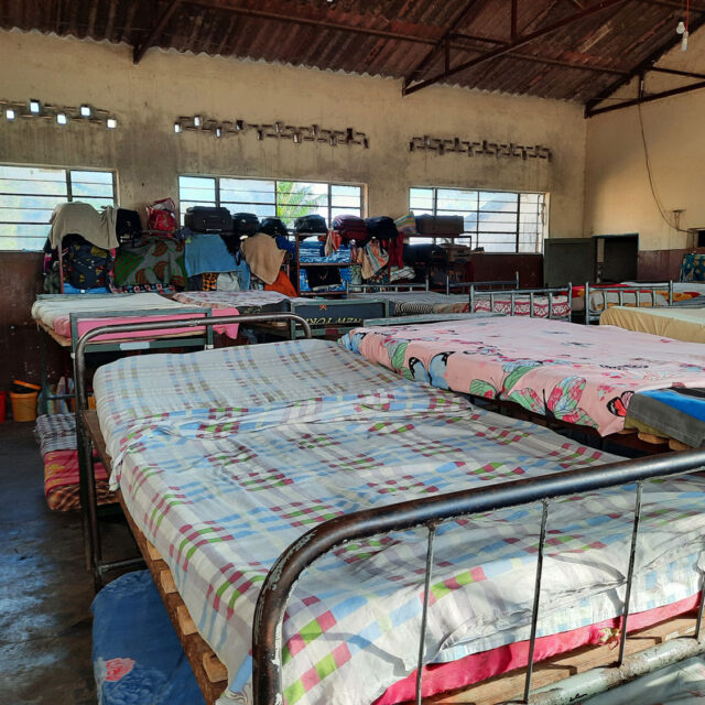 Renovierung des kompletten Schuldaches aufgrund von Undichtigkeiten sowie der Schlafsäle des Internats (Fenster, Moskitoschutz, Regale), Ausbesserung von Außentreppen und Betonböden.
